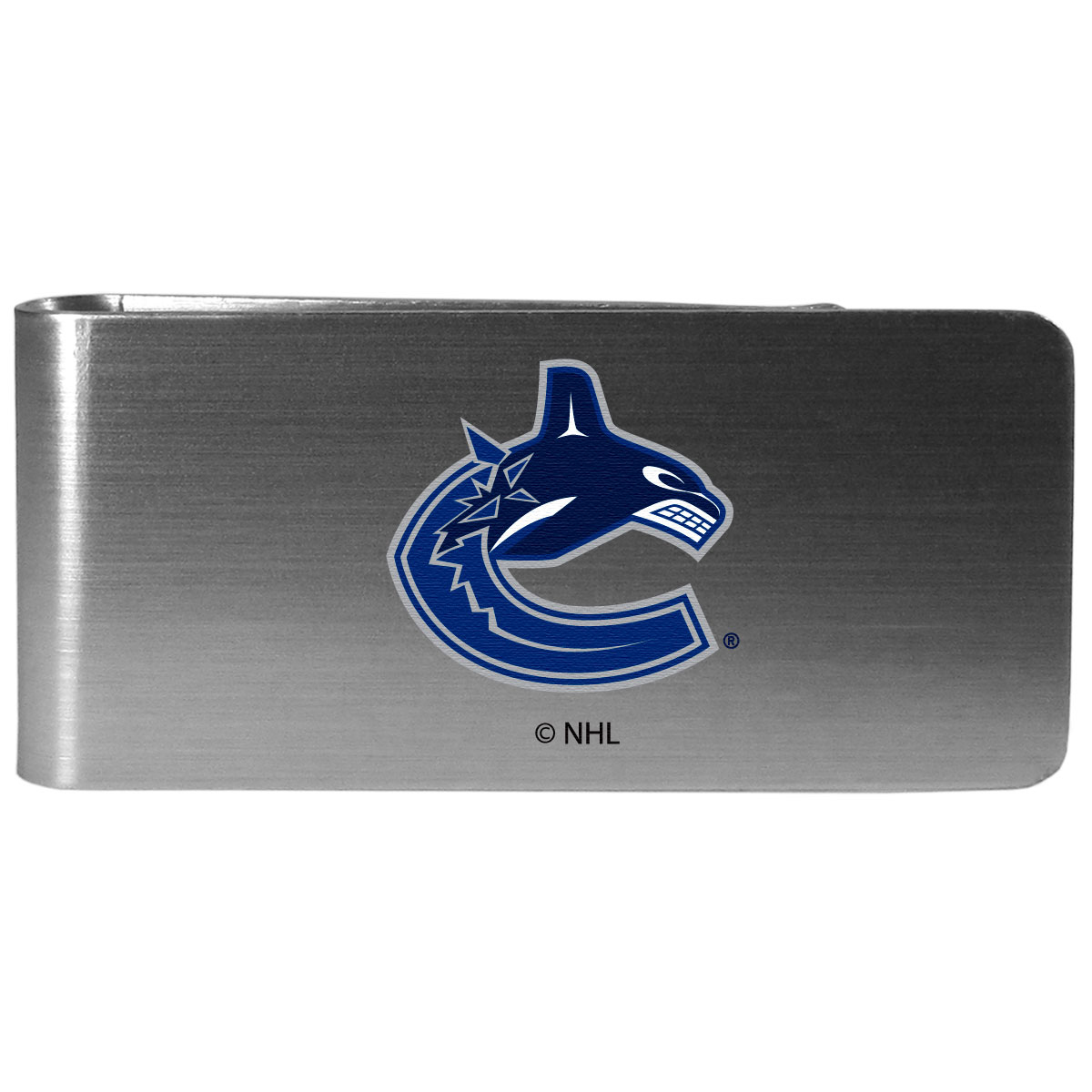 Our high-quality steel money clip is a durable and fashionable men's accessory that sports a Vancouver Canucks logo that is expertly printed on the front of the clip. The steel construction is built to last and guarantees the clips grip will not wear out over time.