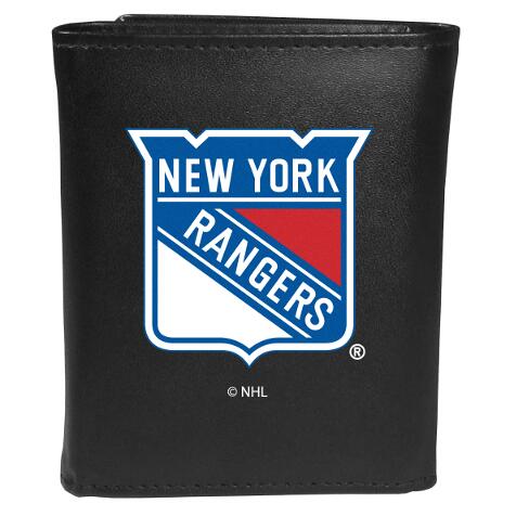 Sports fans do not have to sacrifice style with this classic tri-fold wallet that sports theNew York Rangers extra large logo. This men's fashion accessory has a leather grain look and expert craftmanship for a quality wallet at a great price. The wallet features inner credit card slots, windowed ID slot and a large billfold pocket. The front of the wallet features an extra large printed team logo.