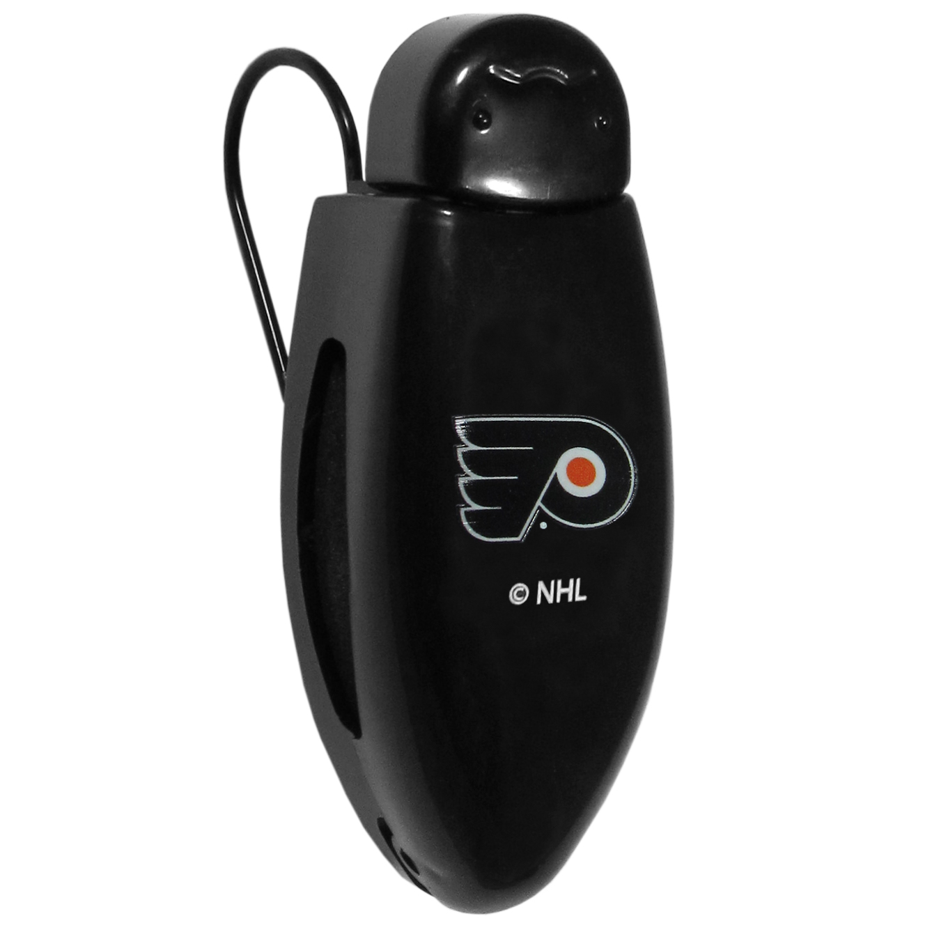 Keep your sunglasses safe from scratches, breaking and getting lost with our handy Philadelphia Flyers visor clip. The 3 inch clip has a push button to open at the top and snaps closed to secure your glasses. The wire back easily slips on to your car visor but can also be used on backpacks and purses to make sure your eyewear is easily accessible and safe from damage.
