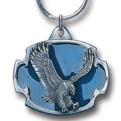 Eagle key chain has an intricately carved eagle landing with it's claws outstretched on a dark blue enamel background. Siskiyou's unique key chain designs often become collector's items and are unequaled with the best craftsmanship. Key chain is 1-3/4" x 1-1/2".