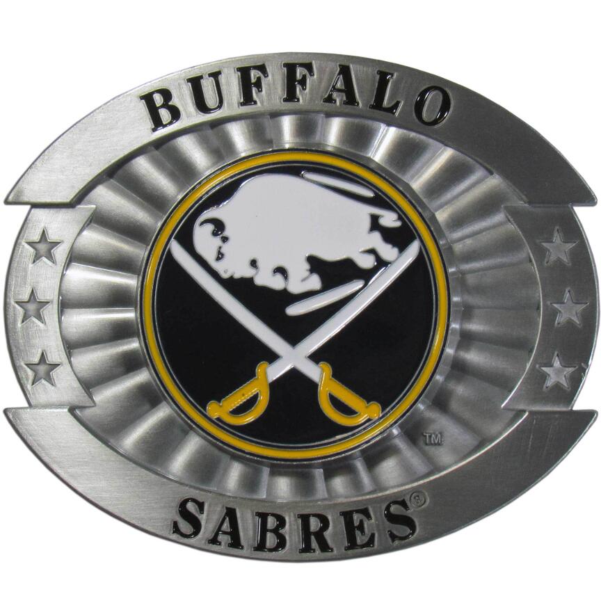 Make a big statement with our over-sized team belt buckles. The buckle is fully cast metal and features expertly enameled details. A great way to show off your Buffalo Sabres pride. Buckle measures 4 inches wide!