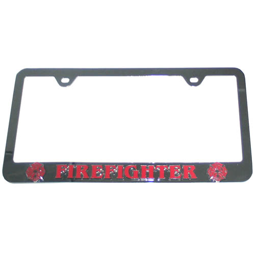 This steel tag frame has a 3D enameled school logo.