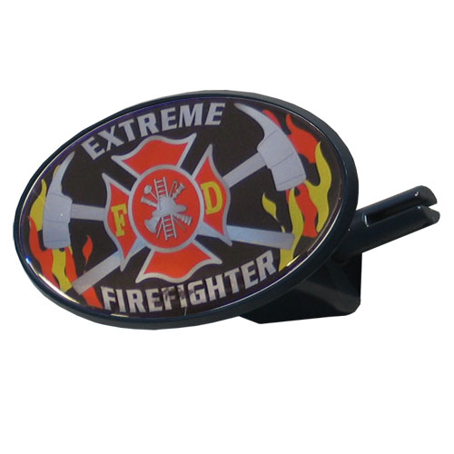 This affordable hitch cover features a large extreme firefighter dome. The unique design requires no additional hardware for installation. It snaps easily into place on your Class III hitch receiver.