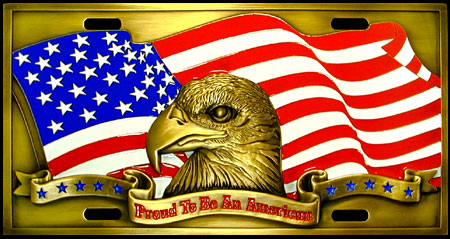 Our "Proud to Be an American" license plate features enameled 3D design and is durable enough to withstand varying weather conditions. Made for your automobile but also great to display at work or home. 11 3/4" X 5 13/16"
