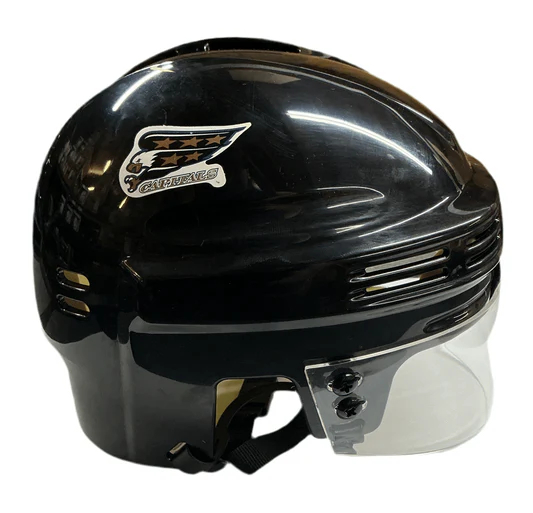 These NHL Player Mini Hockey Helmets are Authentic Down To The Last Detail Including Removable Eye Shield, T-Nuts, Ear Loops & Chin Strap. Officially Licensed By The NHL. Protective Display Case, 6" x 5" size. This Mini Helmet Is Identical To The Full Size Model That The Players Wear. This Helmet Is A Great Piece To Get Autographed.