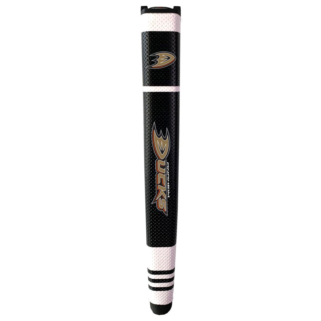 Anaheim Mighty Ducks Putter Grip (Colored with white stripes) Durable rubber construction, Measures approx. 12.5" x 3.5" x 2", Printed graphics, Soft polyurethane surface, Includes removable ball marker, Debossed design, Material: 85% Rubber/15% PVC