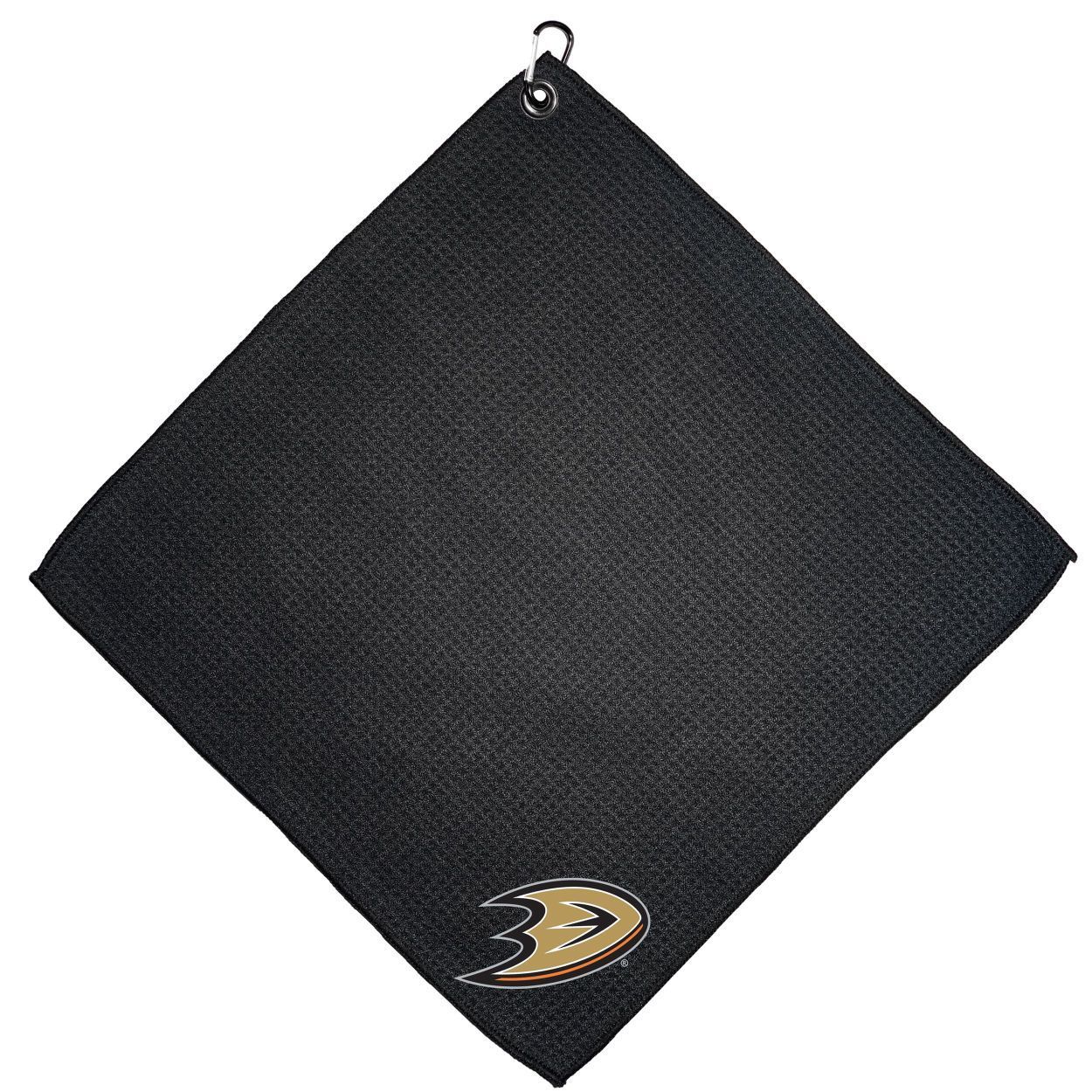 Anaheim Mighty Ducks Microfiber Towel - 15" x 15" (Colored) Carabiner attached, Measures approx. 15" x 15", Cleans without scratching club surface, Printed graphics, Material: 85% Polyester/15% Polyamide, Woven waffle fabric, Machine wash, tumble dry low, Officially licensed