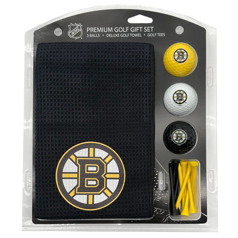 Boston Bruins Microfiber Towel Gift Set - 16 x 40 (Colored) 16” x 40” printed logo towel, 3 different color golf balls, 12 golf tees, High quality digital print