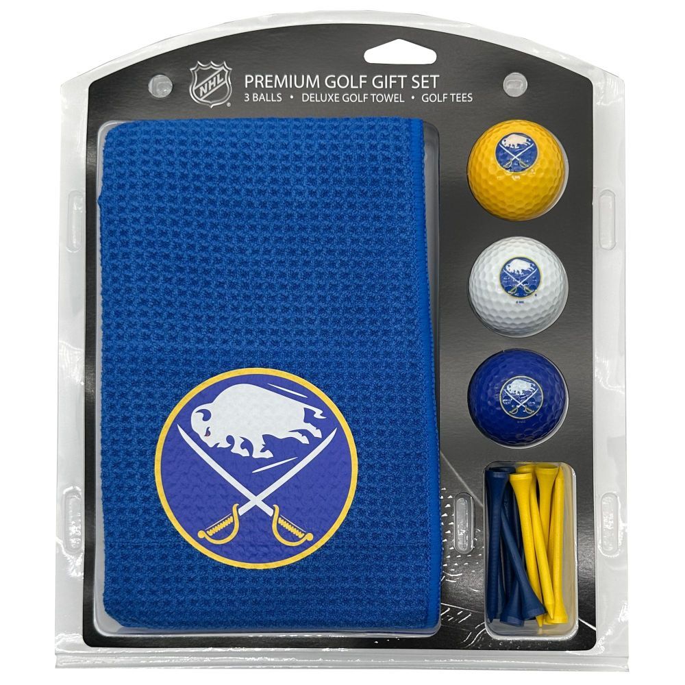 Buffalo Sabres Microfiber Towel Gift Set - 16 x 40 (Colored) 16” x 40” printed logo towel, 3 different color golf balls, 12 golf tees, High quality digital print