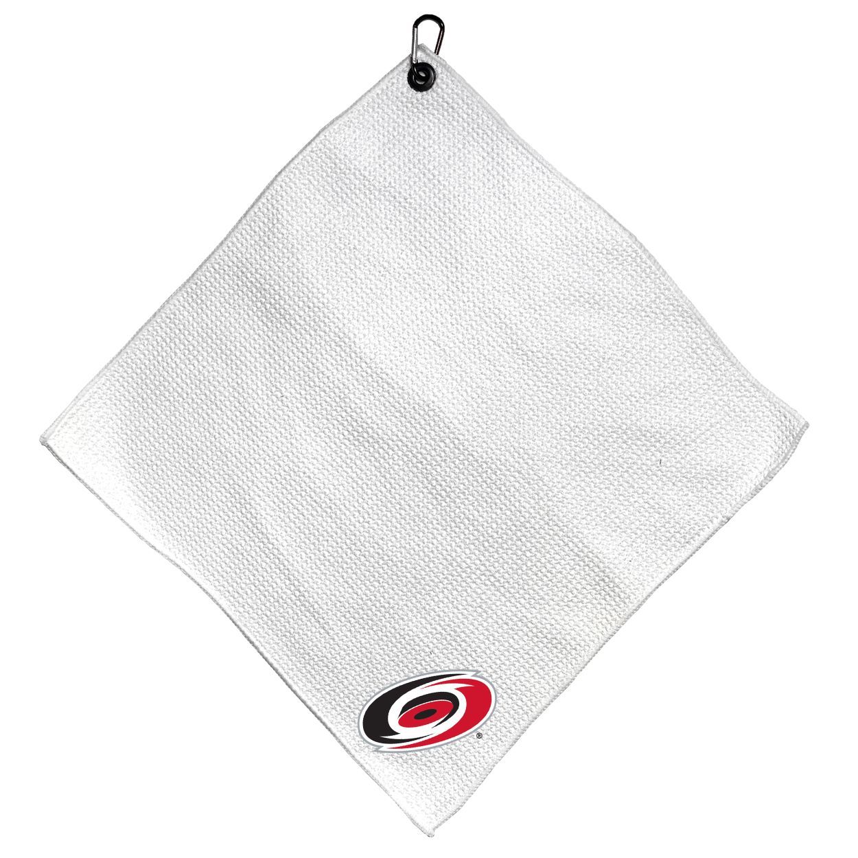 Carolina Hurricanes Microfiber Small Towel - 15" x 15" (White) Carabiner attached, Measures approx. 15" x 15", Cleans without scratching club surface, Printed graphics, Material: 85% Polyester/15% Polyamide, Woven waffle fabric, Machine wash, tumble dry low, Officially licensed