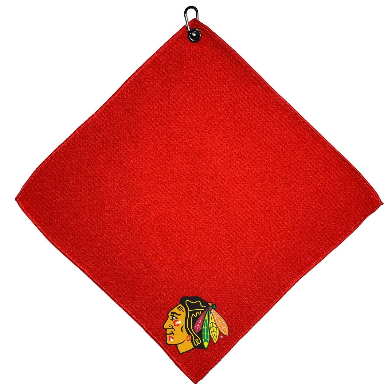 Chicago Blackhawks Microfiber Towel - 15" x 15" (Colored) Carabiner attached, Measures approx. 15" x 15", Cleans without scratching club surface, Printed graphics, Material: 85% Polyester/15% Polyamide, Woven waffle fabric, Machine wash, tumble dry low, Officially licensed
