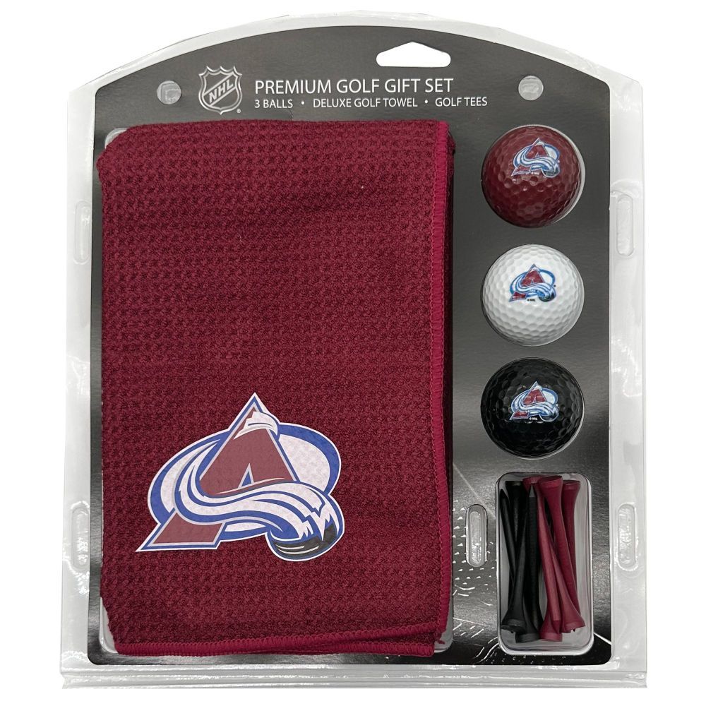 Colorado Avalanche Microfiber Towel Gift Set - 16 x 40 (Colored) 16” x 40” printed logo towel, 3 different color golf balls, 12 golf tees, High quality digital print