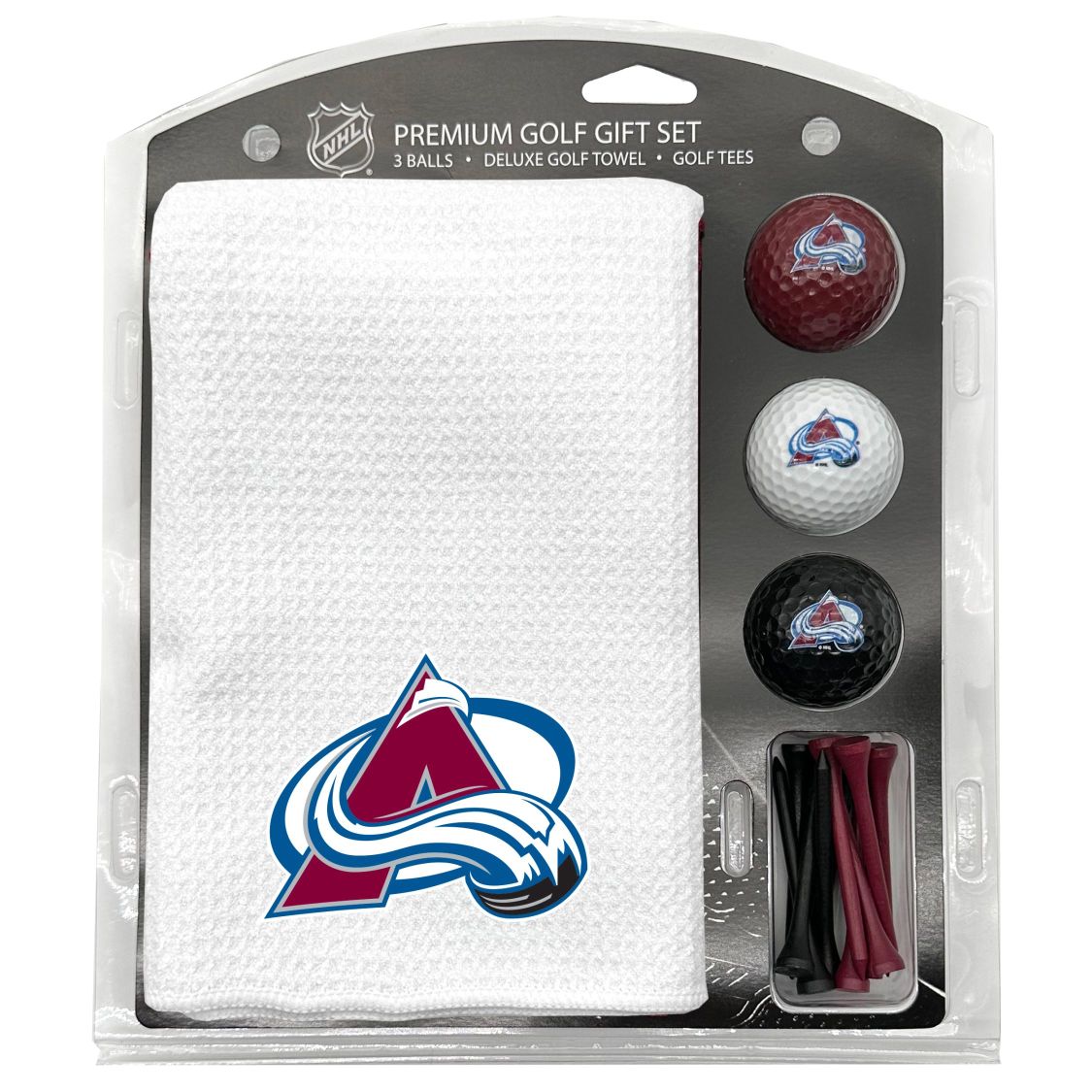 Colorado Avalanche Microfiber Towel Gift Set - 16 x 40 (White) 16” x 40” printed logo towel, 3 different color golf balls, 12 golf tees, High quality digital print