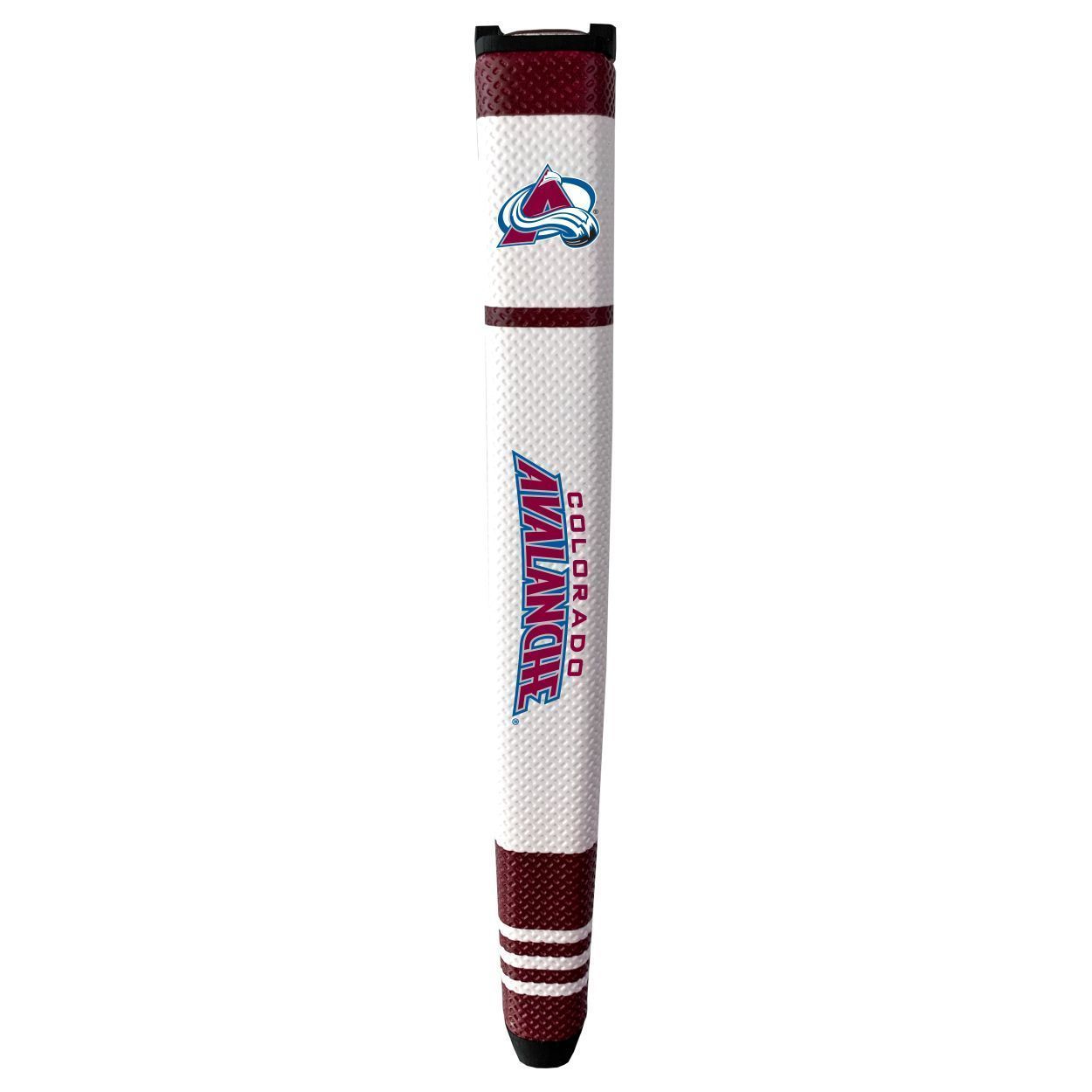 Colorado Avalanche Putter Grip (White with colored stripes) Durable rubber construction, Measures approx. 12.5" x 3.5" x 2", Printed graphics, Soft polyurethane surface, Includes removable ball marker, Debossed design, Material: 85% Rubber/15% PVC