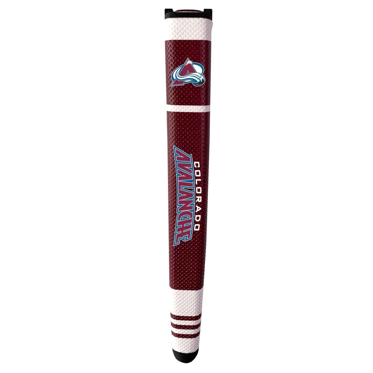 Colorado Avalanche Putter Grip (Colored with white stripes) Durable rubber construction, Measures approx. 12.5" x 3.5" x 2", Printed graphics, Soft polyurethane surface, Includes removable ball marker, Debossed design, Material: 85% Rubber/15% PVC