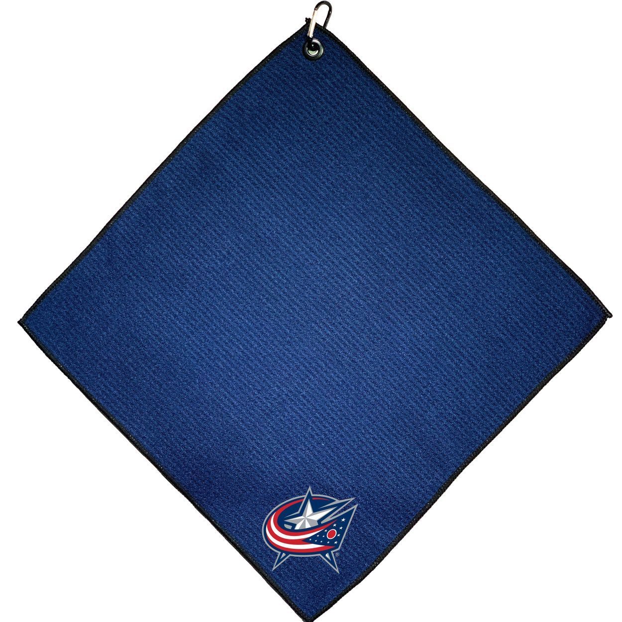 Columbus Blue Jackets Microfiber Towel - 15" x 15" (Colored) Carabiner attached, Measures approx. 15" x 15", Cleans without scratching club surface, Printed graphics, Material: 85% Polyester/15% Polyamide, Woven waffle fabric, Machine wash, tumble dry low, Officially licensed