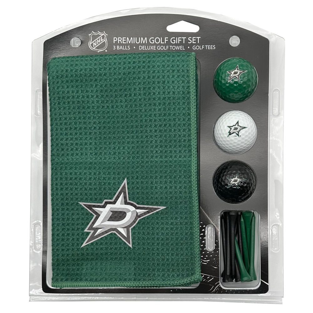 Dallas Stars Microfiber Towel Gift Set - 16 x 40 (Colored) 16” x 40” printed logo towel, 3 different color golf balls, 12 golf tees, High quality digital print