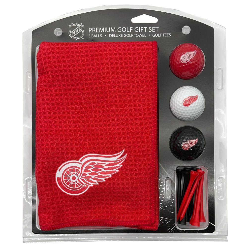 Detroit Red Wings Microfiber Towel Gift Set - 16 x 40 (Colored) 16” x 40” printed logo towel, 3 different color golf balls, 12 golf tees, High quality digital print