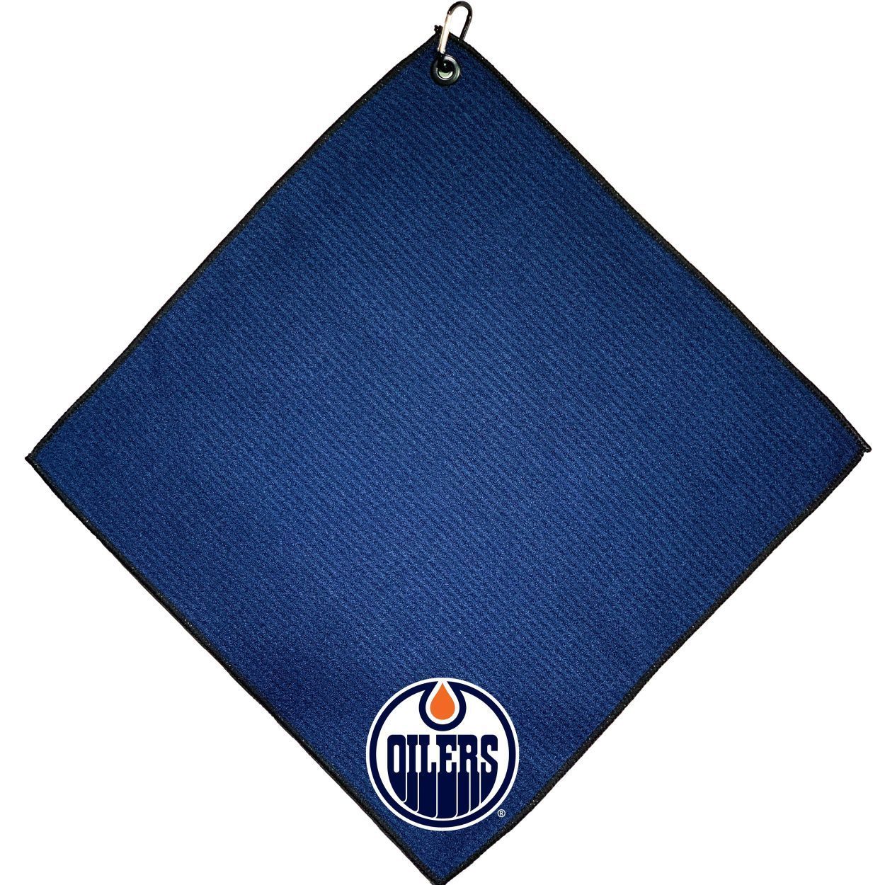 Edmonton Oilers Microfiber Towel - 15" x 15" (Colored) Carabiner attached, Measures approx. 15" x 15", Cleans without scratching club surface, Printed graphics, Material: 85% Polyester/15% Polyamide, Woven waffle fabric, Machine wash, tumble dry low, Officially licensed