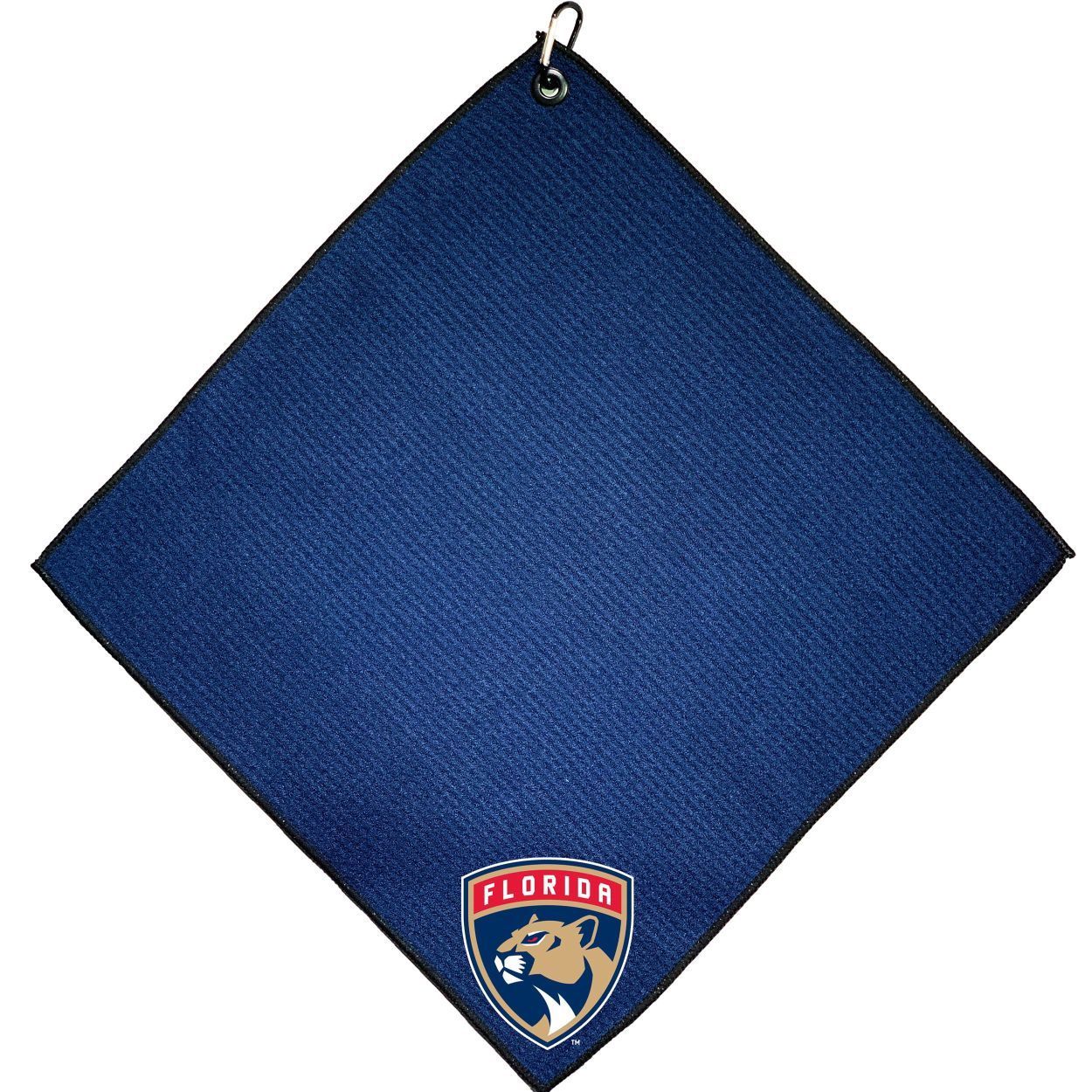 Florida Panthers Microfiber Towel - 15" x 15" (Colored) Carabiner attached, Measures approx. 15" x 15", Cleans without scratching club surface, Printed graphics, Material: 85% Polyester/15% Polyamide, Woven waffle fabric, Machine wash, tumble dry low, Officially licensed