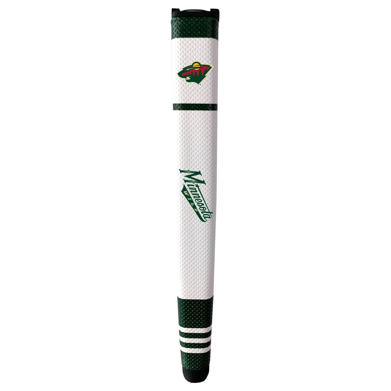 Minnesota Wild Putter Grip (White with colored stripes) Durable rubber construction, Measures approx. 12.5" x 3.5" x 2", Printed graphics, Soft polyurethane surface, Includes removable ball marker, Debossed design, Material: 85% Rubber/15% PVC