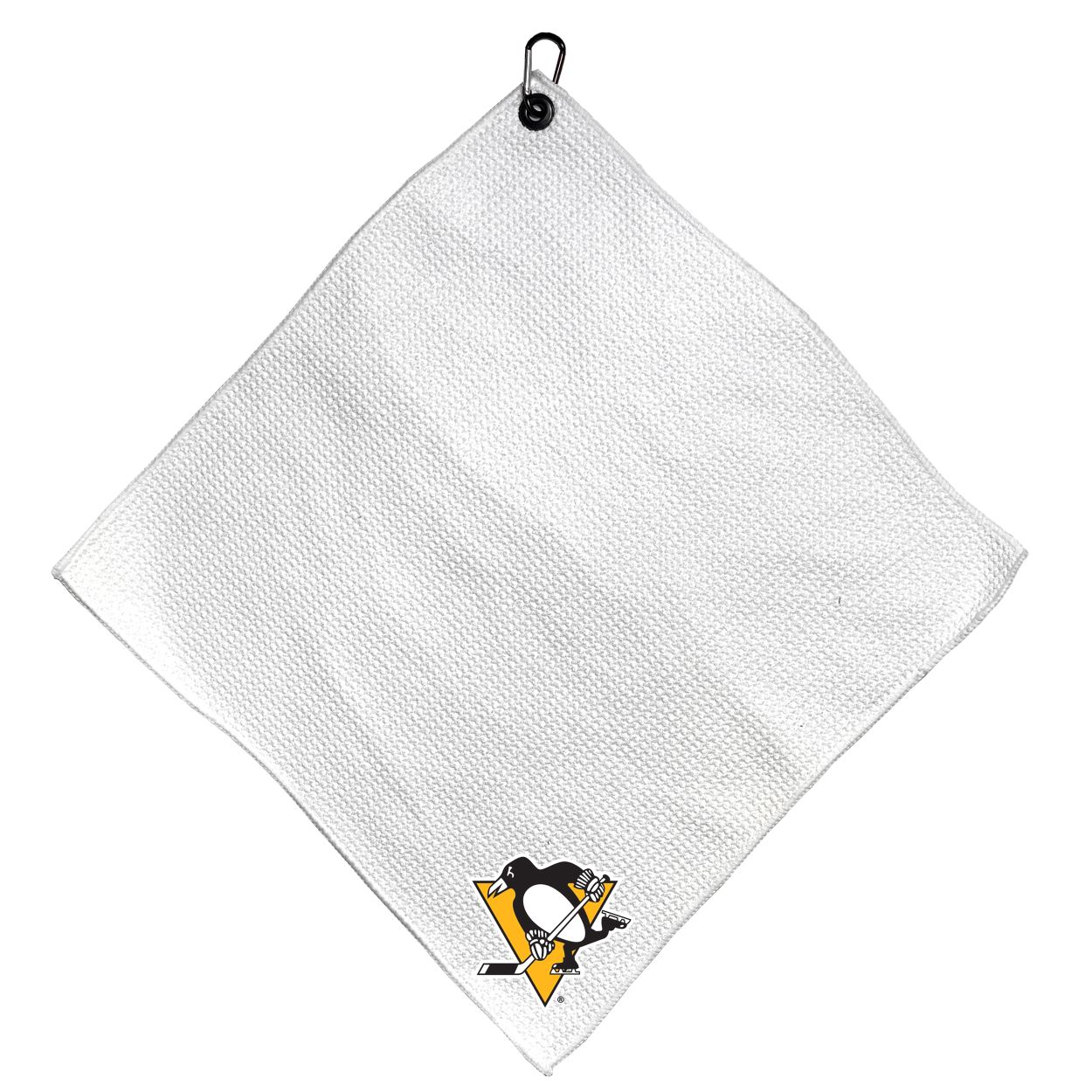 Pittsburgh Penguins Microfiber Small Towel - 15" x 15" (White) Carabiner attached, Measures approx. 15" x 15", Cleans without scratching club surface, Printed graphics, Material: 85% Polyester/15% Polyamide, Woven waffle fabric, Machine wash, tumble dry low, Officially licensed