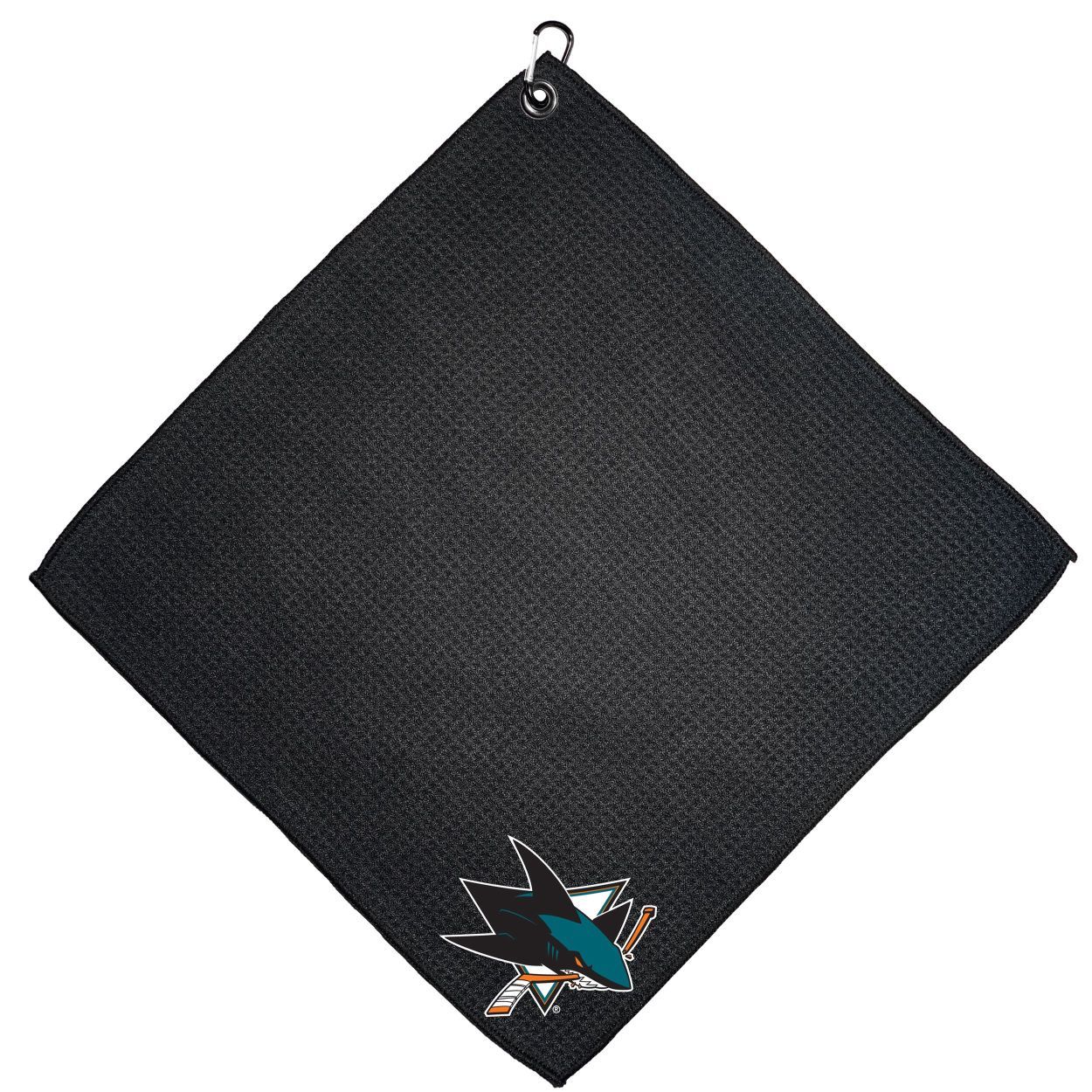 San Jose Sharks Microfiber Towel - 15" x 15" (Colored) Carabiner attached, Measures approx. 15" x 15", Cleans without scratching club surface, Printed graphics, Material: 85% Polyester/15% Polyamide, Woven waffle fabric, Machine wash, tumble dry low, Officially licensed