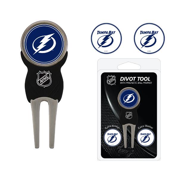 Add some team pride to your game on the green with the Team Golf® Divot Tool and Marker Set. This set includes three double-sided, enamel magnetic markers that feature the team logo and wordmark and a nickel-finished divot tool with the team logo. The magnetic markers are easily removed from and reattach to the divot tool, making it easy to mark your ball. Support your team with this team-inspired set.