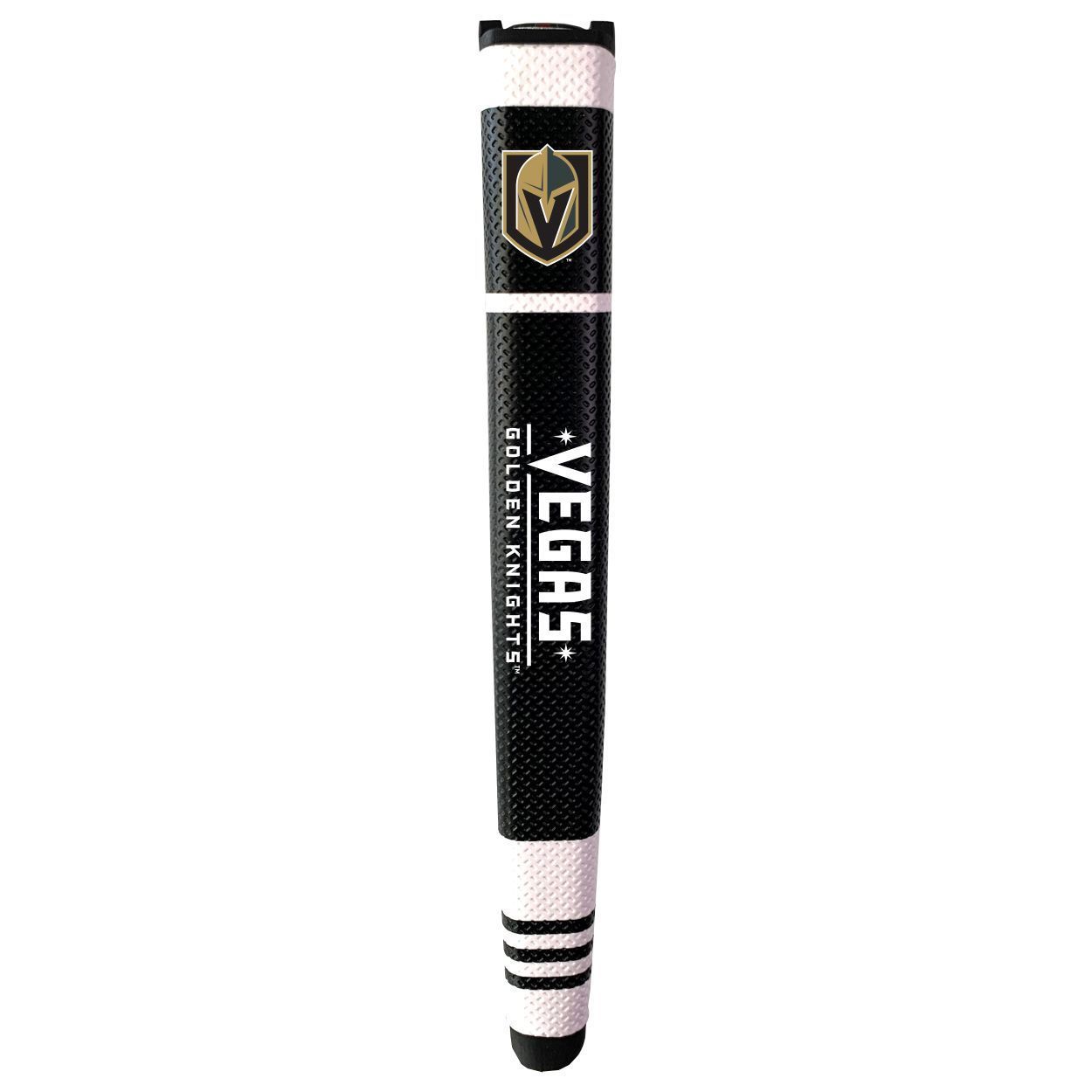Vegas Golden Knights Putter Grip (Colored with white stripes) Durable rubber construction, Measures approx. 12.5" x 3.5" x 2", Printed graphics, Soft polyurethane surface, Includes removable ball marker, Debossed design, Material: 85% Rubber/15% PVC