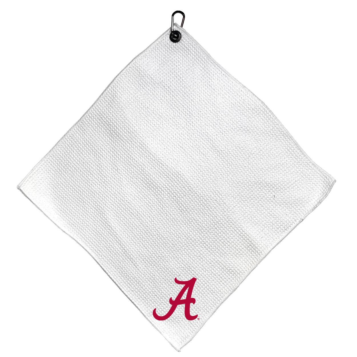 Alabama Crimson Tide Microfiber Small Towel - 15" x 15" (White) Carabiner attached, Measures approx. 15" x 15", Cleans without scratching club surface, Printed graphics, Material: 85% Polyester/15% Polyamide, Woven waffle fabric, Machine wash, tumble dry low, Officially licensed Carabiner attached, Measures approx. 15" x 15", Cleans without scratching club surface, Printed graphics, Material: 85% Polyester/15% Polyamide, Woven waffle fabric, Machine wash, tumble dry low, Officially licensed