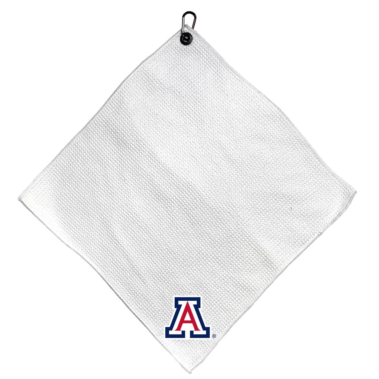 Arizona Wildcats Microfiber Small Towel - 15" x 15" (White) Carabiner attached, Measures approx. 15" x 15", Cleans without scratching club surface, Printed graphics, Material: 85% Polyester/15% Polyamide, Woven waffle fabric, Machine wash, tumble dry low, Officially licensed