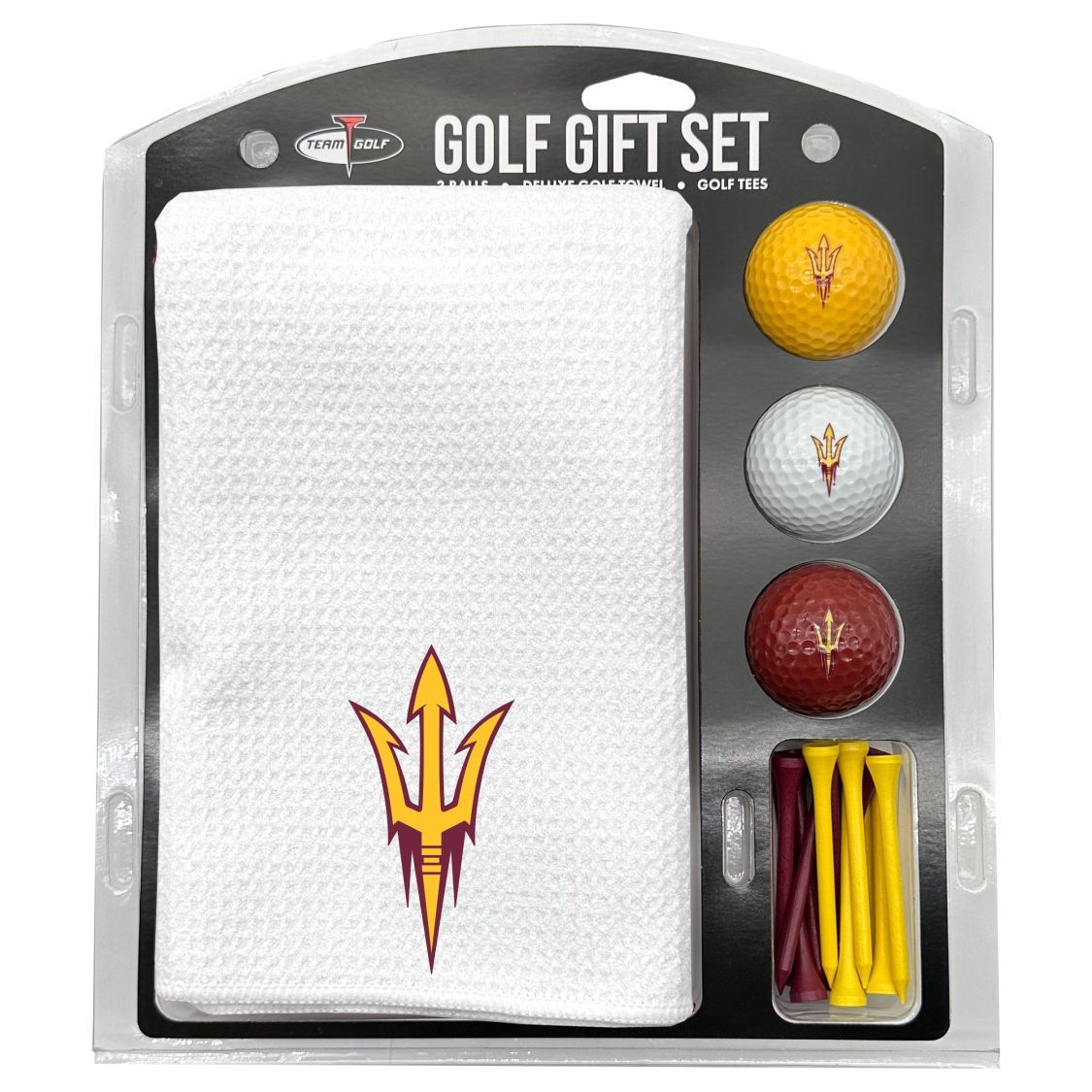 Arizona State Sun Devils Microfiber Towel Gift Set - 16 x 40 (White) 16” x 40” printed logo towel, 3 different color golf balls, 12 golf tees, High quality digital print