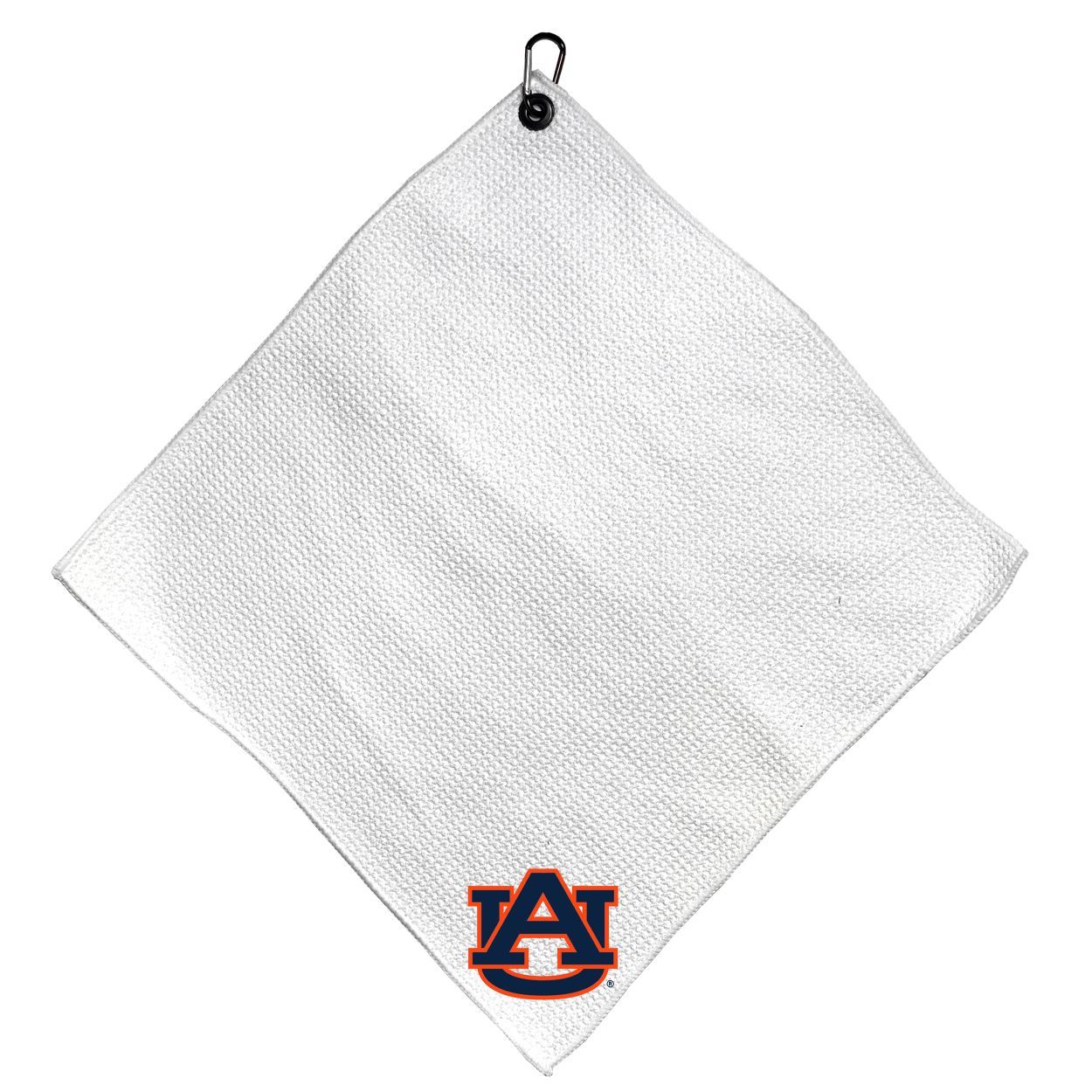 Auburn Tigers Microfiber Small Towel - 15" x 15" (White) Carabiner attached, Measures approx. 15" x 15", Cleans without scratching club surface, Printed graphics, Material: 85% Polyester/15% Polyamide, Woven waffle fabric, Machine wash, tumble dry low, Officially licensed