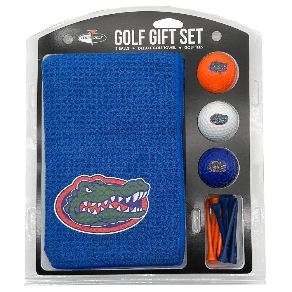 Florida Gators Microfiber Towel Gift Set - 16 x 40 (Colored) 16” x 40” printed logo towel, 3 different color golf balls, 12 golf tees, High quality digital print