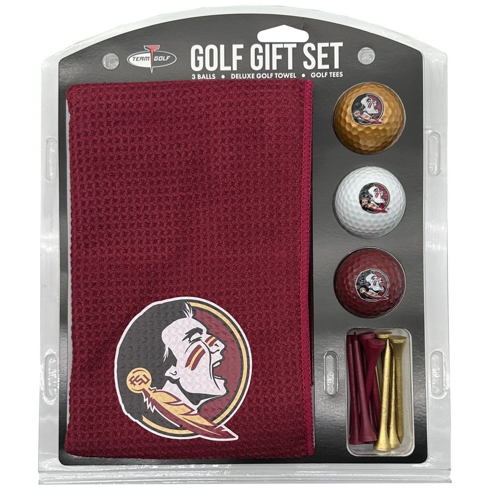Florida State Seminoles Microfiber Towel Gift Set - 16 x 40 (Colored) 16” x 40” printed logo towel, 3 different color golf balls, 12 golf tees, High quality digital print
