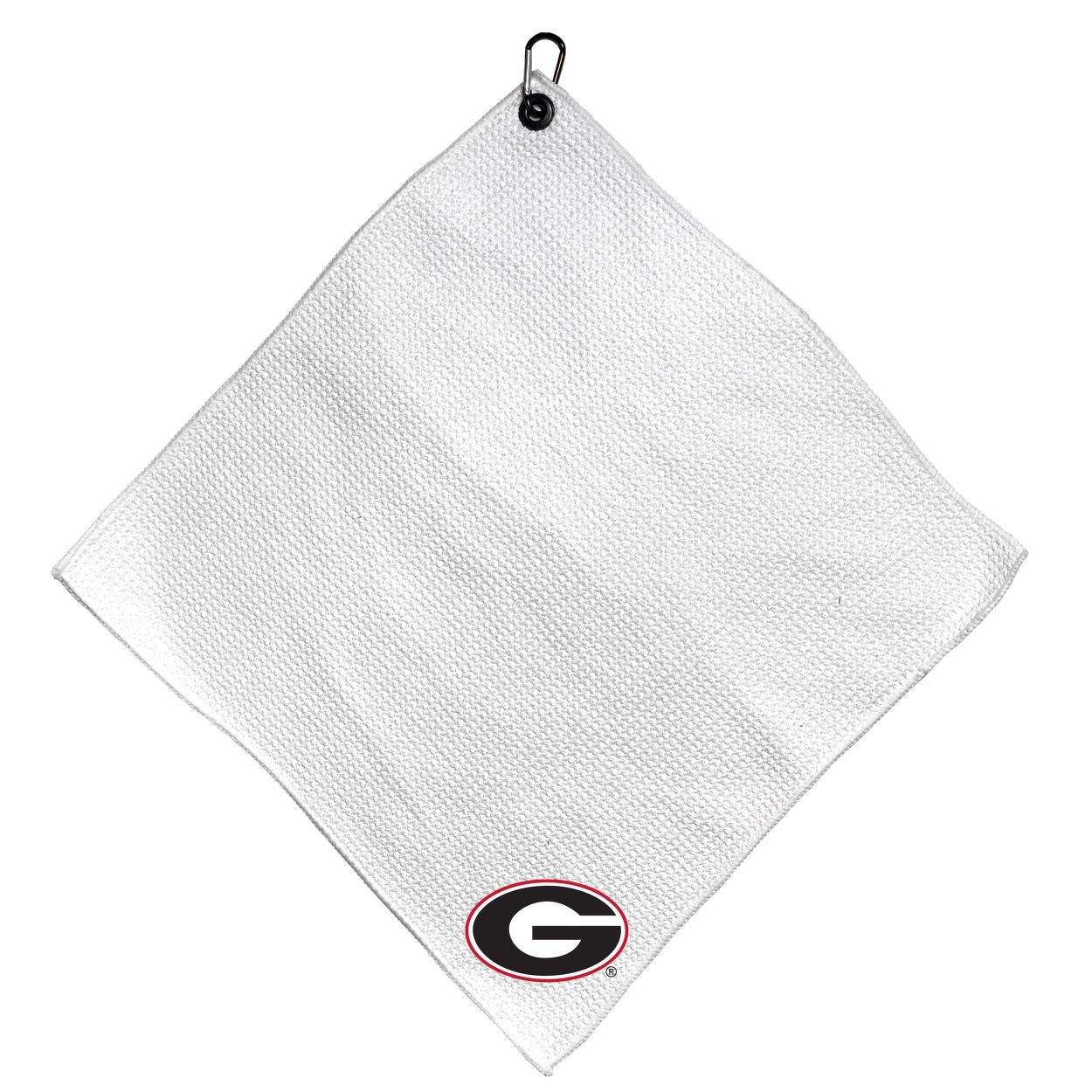 Georgia Bulldogs Microfiber Small Towel - 15" x 15" (White) Carabiner attached, Measures approx. 15" x 15", Cleans without scratching club surface, Printed graphics, Material: 85% Polyester/15% Polyamide, Woven waffle fabric, Machine wash, tumble dry low, Officially licensed
