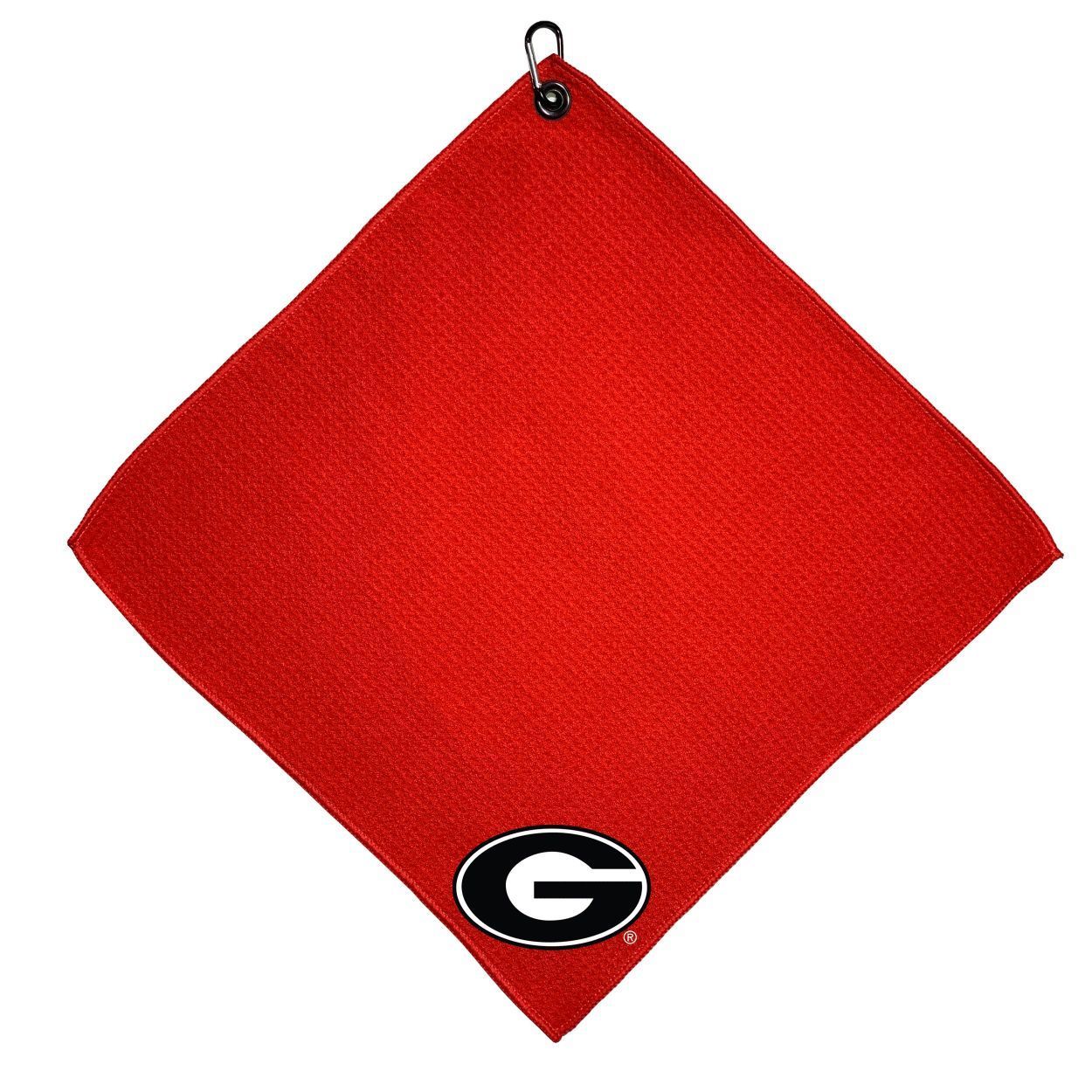 Georgia Bulldogs Microfiber Towel - 15" x 15" (Colored) Carabiner attached, Measures approx. 15" x 15", Cleans without scratching club surface, Printed graphics, Material: 85% Polyester/15% Polyamide, Woven waffle fabric, Machine wash, tumble dry low, Officially licensed
