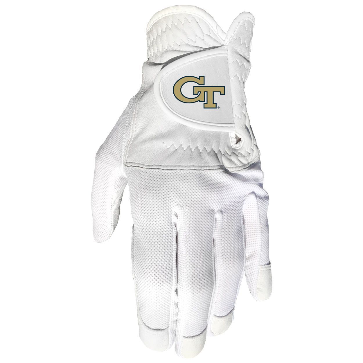 Georgia Tech Yellow Jackets Cool mesh with cabretta leather - one size - mens left 100% cabretta leather palm and finger tips, High quality digital print, Fits most hand sizes, Left hand only (for right handed golfers), Great gift for the golfer in your life!