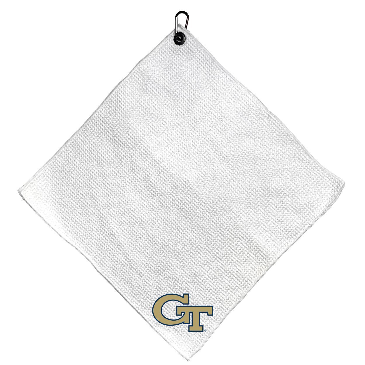 Georgia Tech Yellow Jackets Microfiber Small Towel - 15" x 15" (White) Carabiner attached, Measures approx. 15" x 15", Cleans without scratching club surface, Printed graphics, Material: 85% Polyester/15% Polyamide, Woven waffle fabric, Machine wash, tumble dry low, Officially licensed