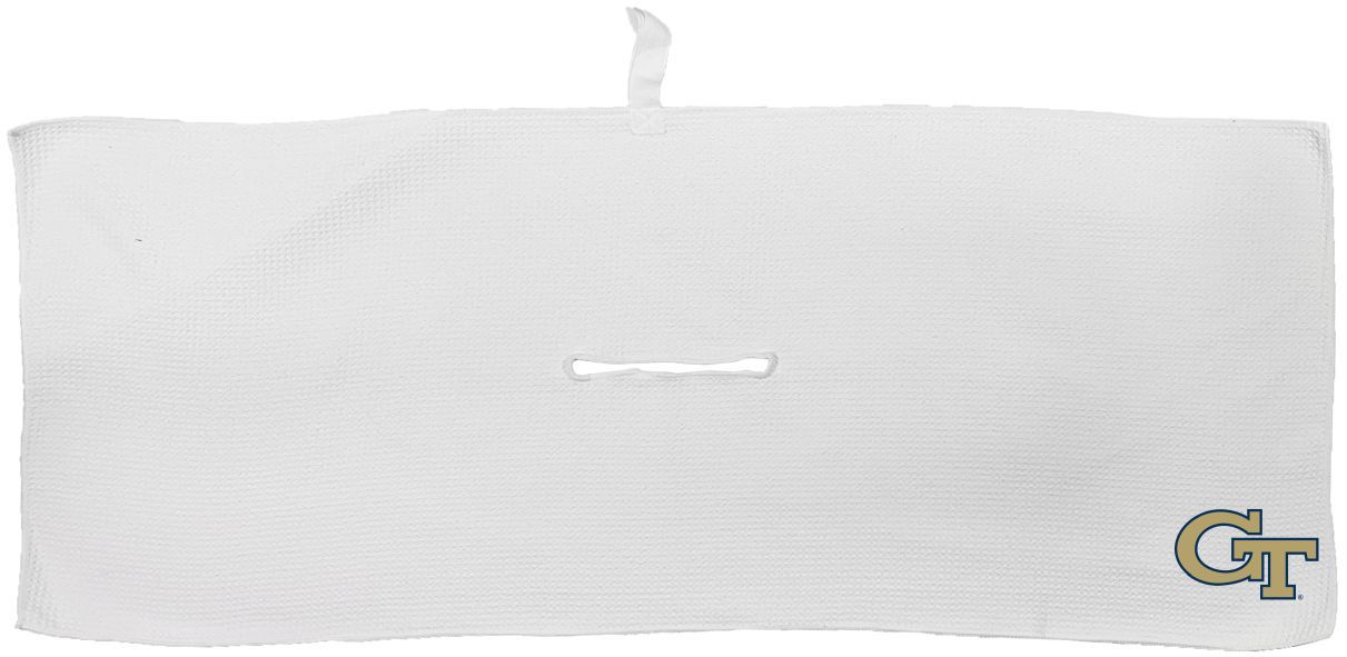 Georgia Tech Yellow Jackets Large Microfiber Towel - 16" x 40" (White) Carabiner attachment system, Measures approx. 16'' x 40'', Sublimated graphics, Center slit measures approx. 6" in diameter, Fabric loop, Material: 85% Polyester/15% Polyamide, Machine wash, tumble dry low, Officially licensed