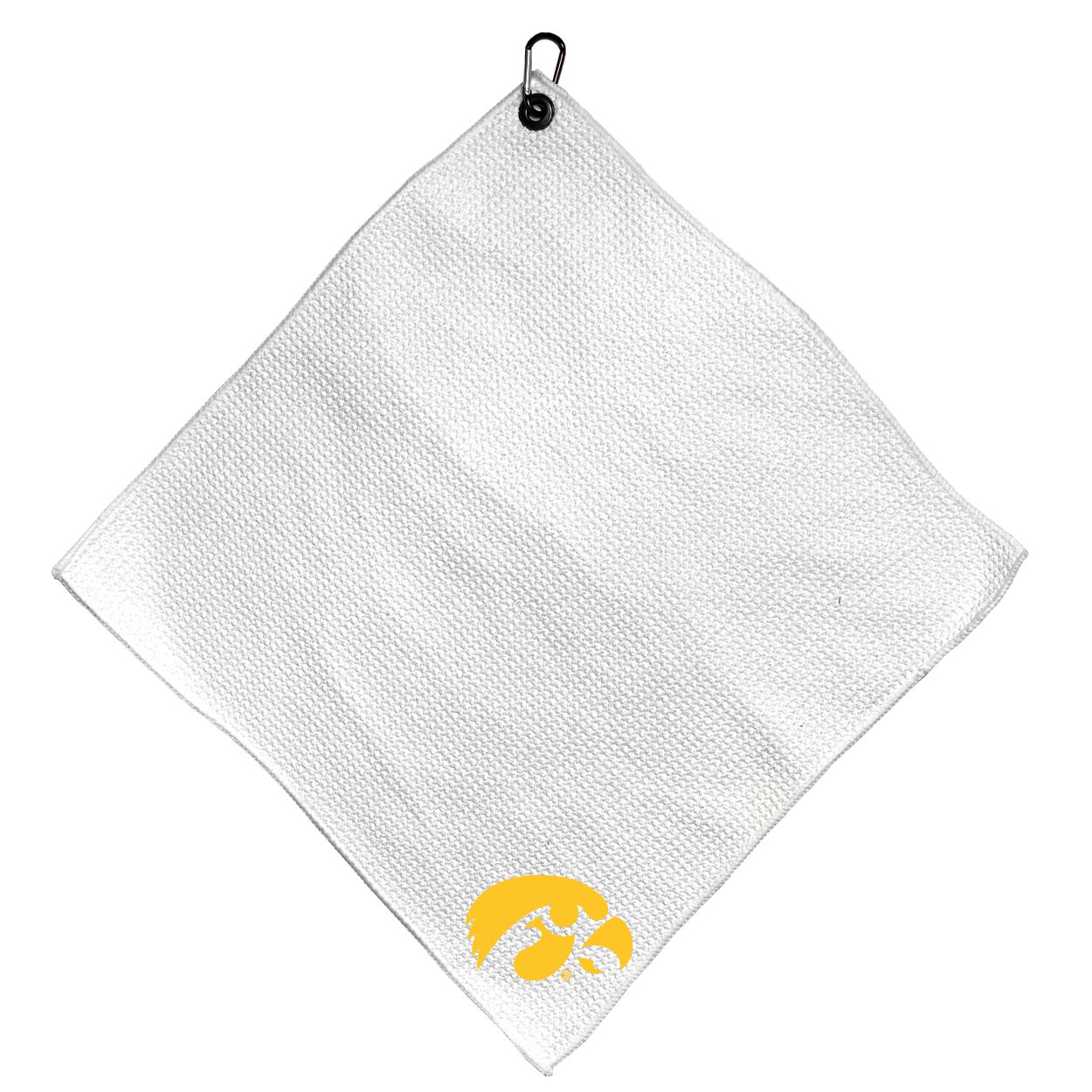 Iowa Hawkeyes Microfiber Small Towel - 15" x 15" (White) Carabiner attached, Measures approx. 15" x 15", Cleans without scratching club surface, Printed graphics, Material: 85% Polyester/15% Polyamide, Woven waffle fabric, Machine wash, tumble dry low, Officially licensed