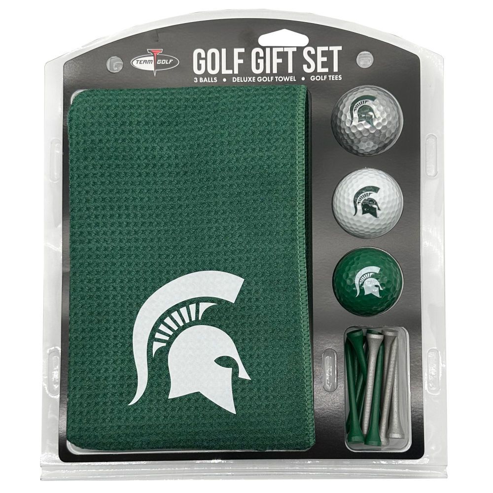 Michigan State Spartans Microfiber Towel Gift Set - 16 x 40 (Colored) 16” x 40” printed logo towel, 3 different color golf balls, 12 golf tees, High quality digital print