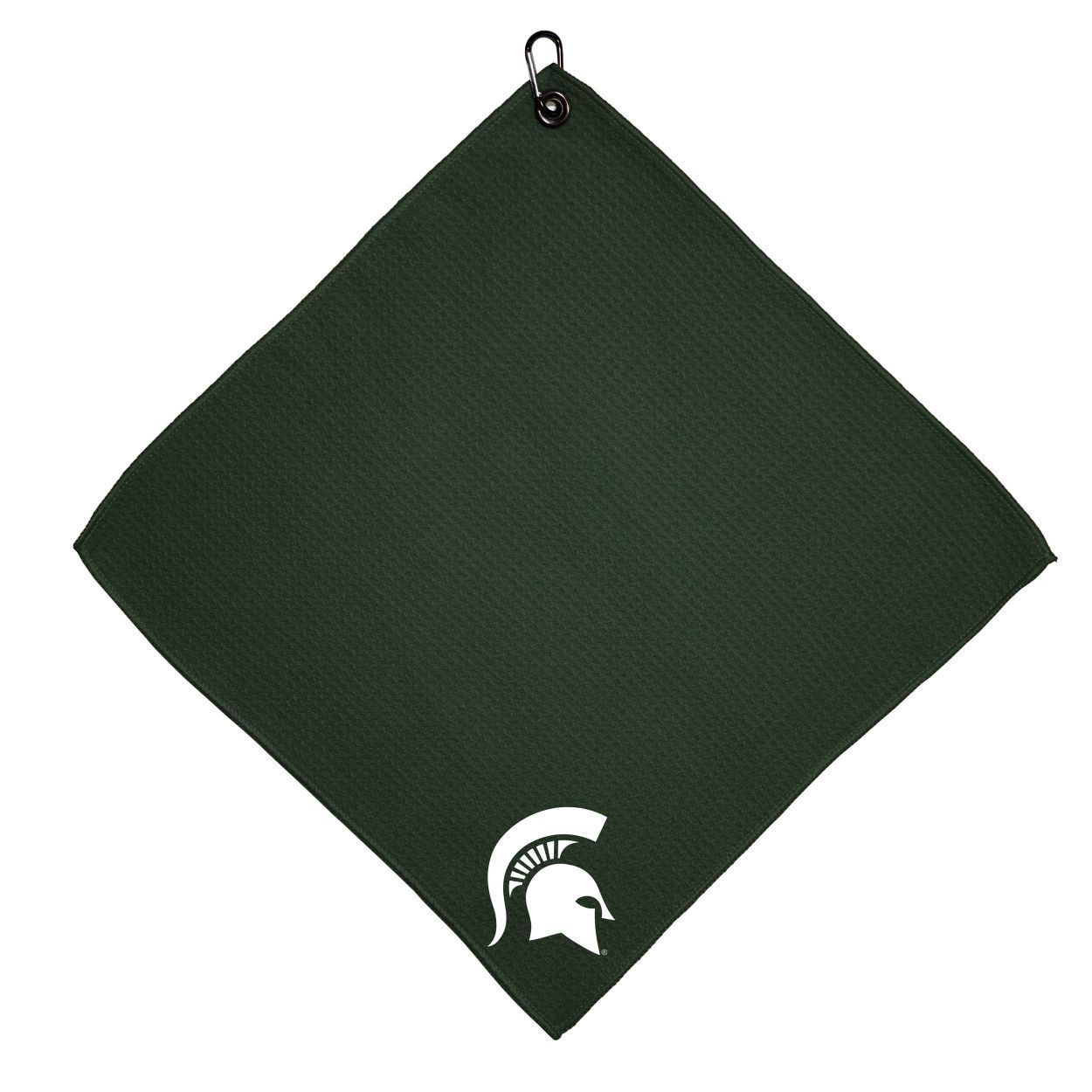 Michigan State Spartans Microfiber Towel - 15" x 15" (Colored) Carabiner attached, Measures approx. 15" x 15", Cleans without scratching club surface, Printed graphics, Material: 85% Polyester/15% Polyamide, Woven waffle fabric, Machine wash, tumble dry low, Officially licensed