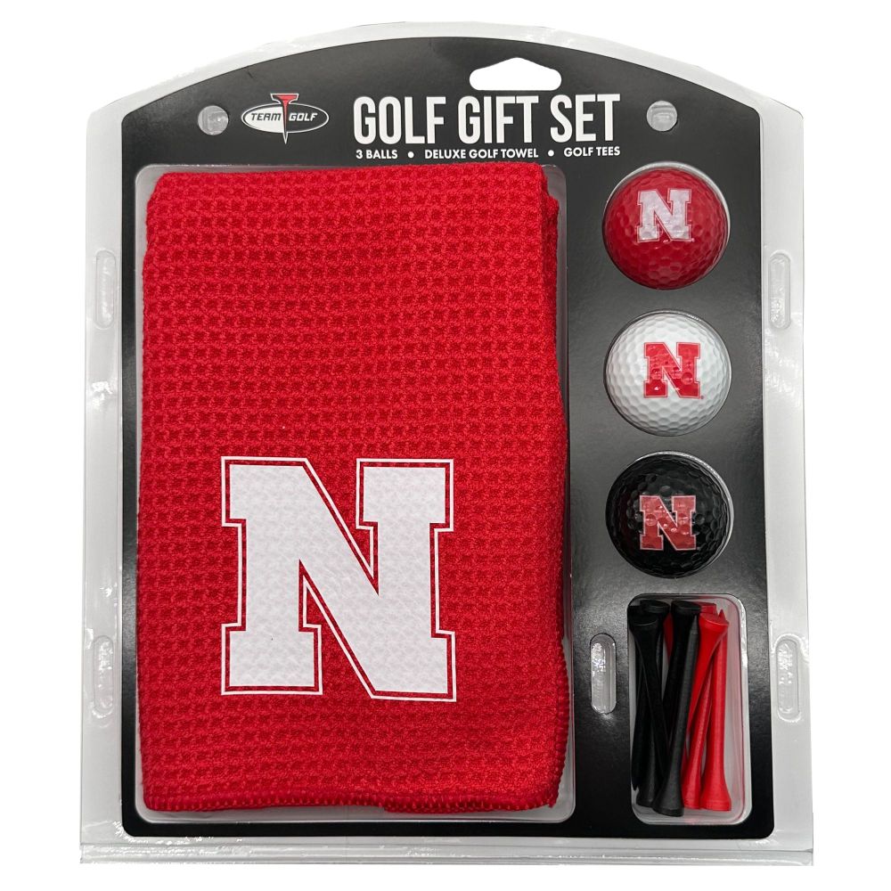 Nebraska Cornhuskers Microfiber Towel Gift Set - 16 x 40 (Colored) 16” x 40” printed logo towel, 3 different color golf balls, 12 golf tees, High quality digital print