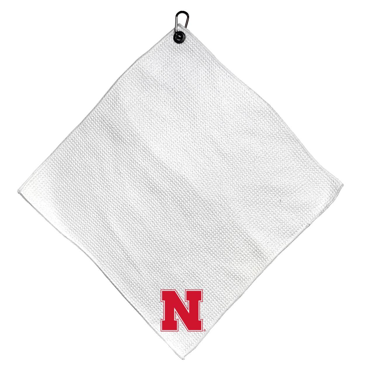 Nebraska Cornhuskers Microfiber Small Towel - 15" x 15" (White) Carabiner attached, Measures approx. 15" x 15", Cleans without scratching club surface, Printed graphics, Material: 85% Polyester/15% Polyamide, Woven waffle fabric, Machine wash, tumble dry low, Officially licensed
