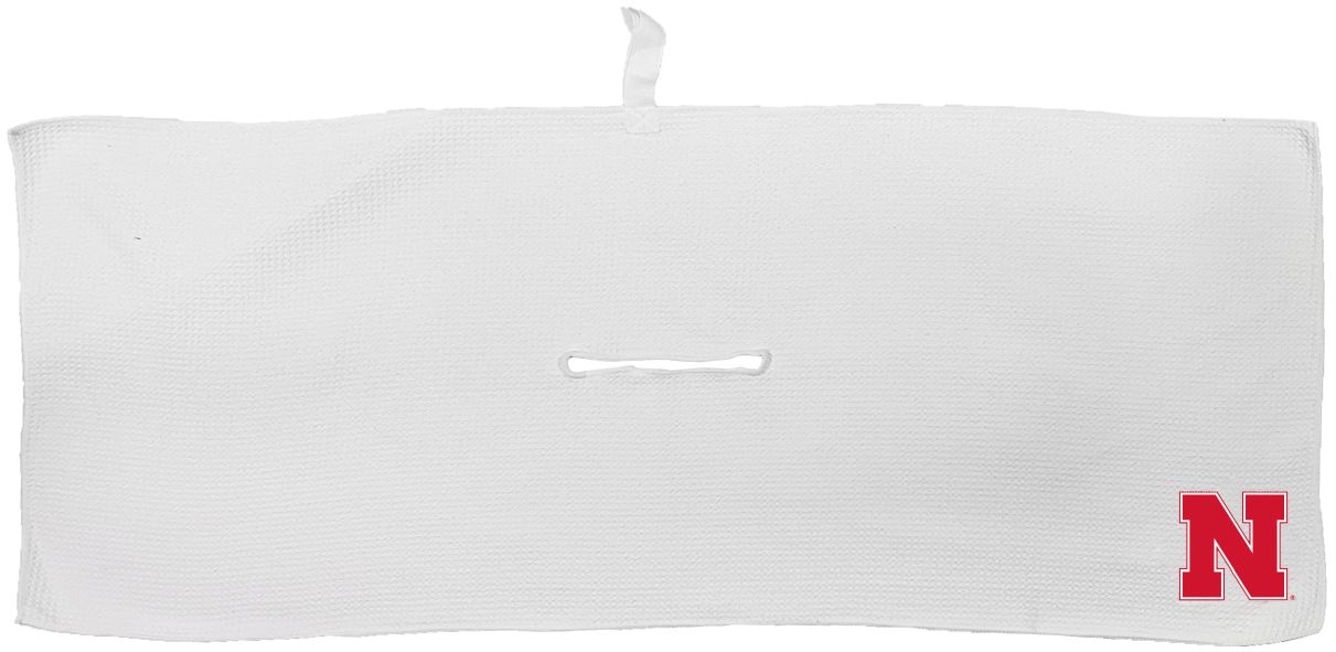Nebraska Cornhuskers Large Microfiber Towel - 16" x 40" (White) Carabiner attachment system, Measures approx. 16'' x 40'', Sublimated graphics, Center slit measures approx. 6" in diameter, Fabric loop, Material: 85% Polyester/15% Polyamide, Machine wash, tumble dry low, Officially licensed