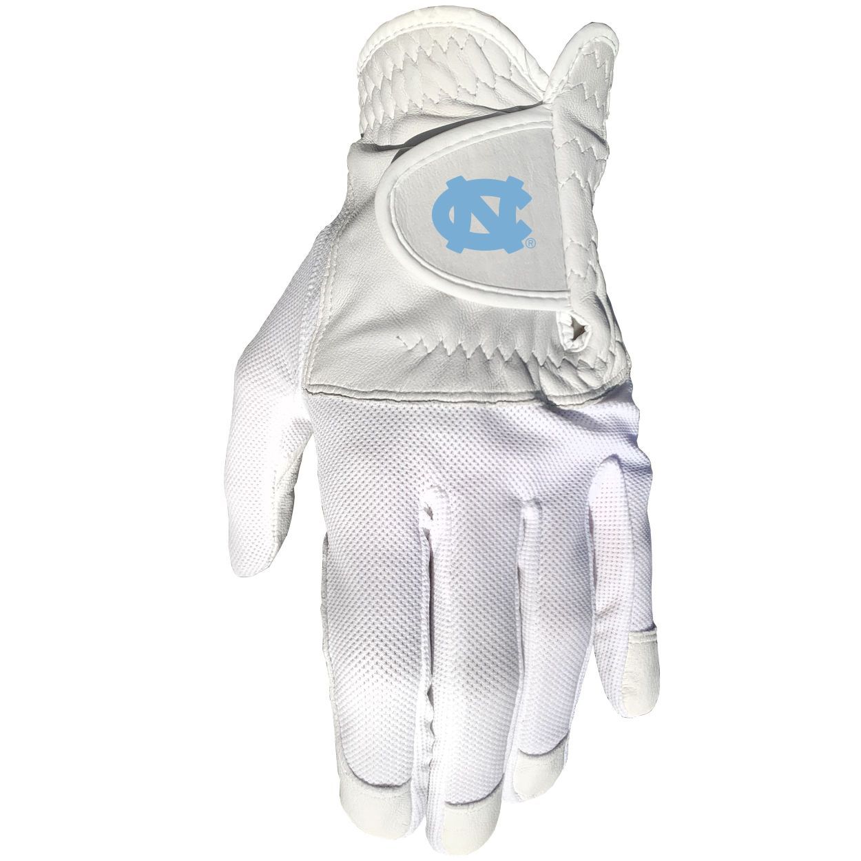 North Carolina Tar Heels Cool mesh with cabretta leather - one size - mens left 100% cabretta leather palm and finger tips, High quality digital print, Fits most hand sizes, Left hand only (for right handed golfers), Great gift for the golfer in your life!