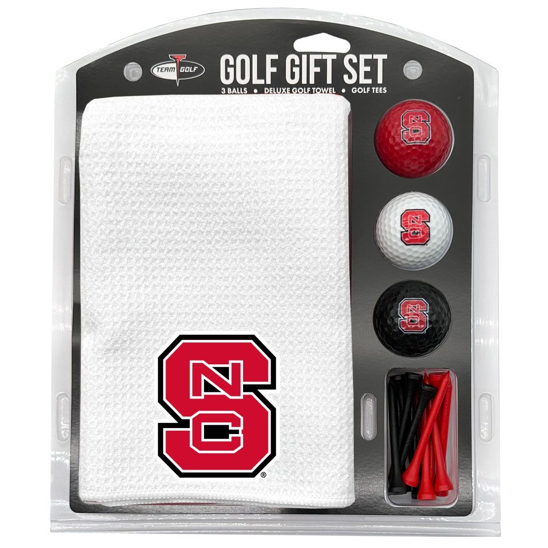 North Carolina State Wolfpack Microfiber Towel Gift Set - 16 x 40 (White) 16” x 40” printed logo towel, 3 different color golf balls, 12 golf tees, High quality digital print