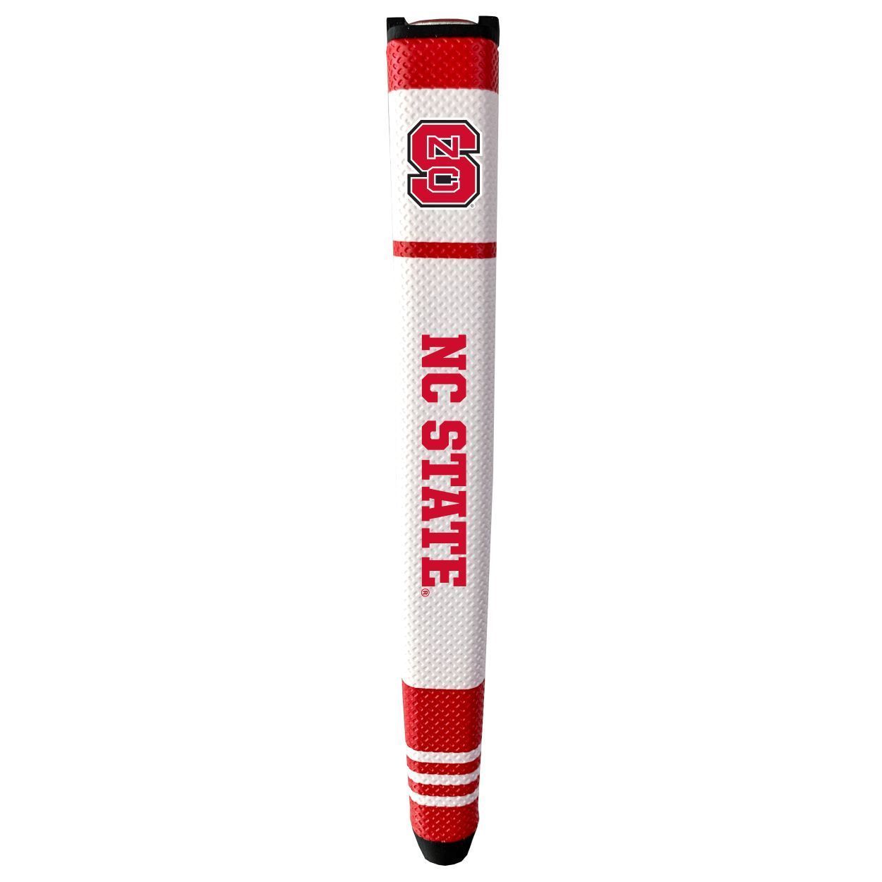 North Carolina State Wolfpack Putter Grip (White with colored stripes) Durable rubber construction, Measures approx. 12.5" x 3.5" x 2", Printed graphics, Soft polyurethane surface, Includes removable ball marker, Debossed design, Material: 85% Rubber/15% PVC