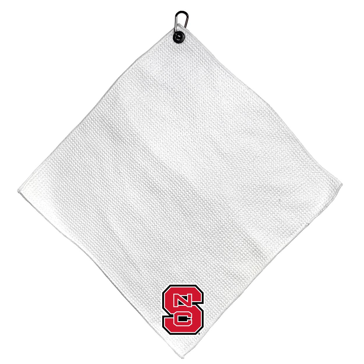 North Carolina State Wolfpack Microfiber Small Towel - 15" x 15" (White) Carabiner attached, Measures approx. 15" x 15", Cleans without scratching club surface, Printed graphics, Material: 85% Polyester/15% Polyamide, Woven waffle fabric, Machine wash, tumble dry low, Officially licensed